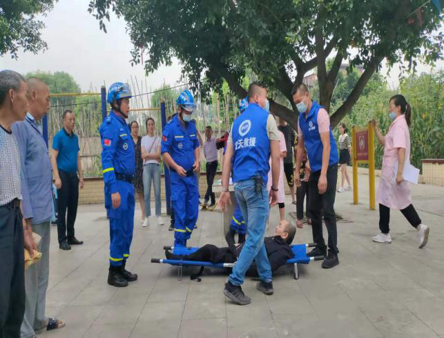 3.6月7日,夹江县民政局组织甘江一分院开展消防、防汛应急演练。此次演练模拟养老院二楼发生火情,全院80多名老人的生命安全受到威胁,在工作人员和蓝天救援队的指引下,老人们用毛巾捂住口鼻从安全通道快速、有序地撤离到室外广场,消防员成功营救出多名行动不便的老人,在各组人员协同作战下逃生疏散、灭火救援任务顺利完成。全县养老机构负责人观摩了演练。