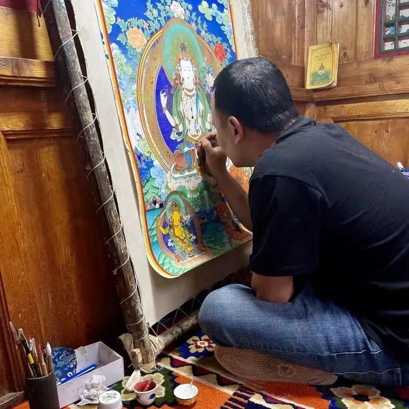 传统唐卡的绘制要求严苛、程序极为复杂,必须按照经书中的仪轨及上师的要求进行,包括绘前仪式、制作画布、构图起稿、着色染色、勾线定型、铺金描银、开眼、缝裱开光等一整套工艺程序。制作一幅唐卡用时较长,短则半年完成,长则需要十余年。