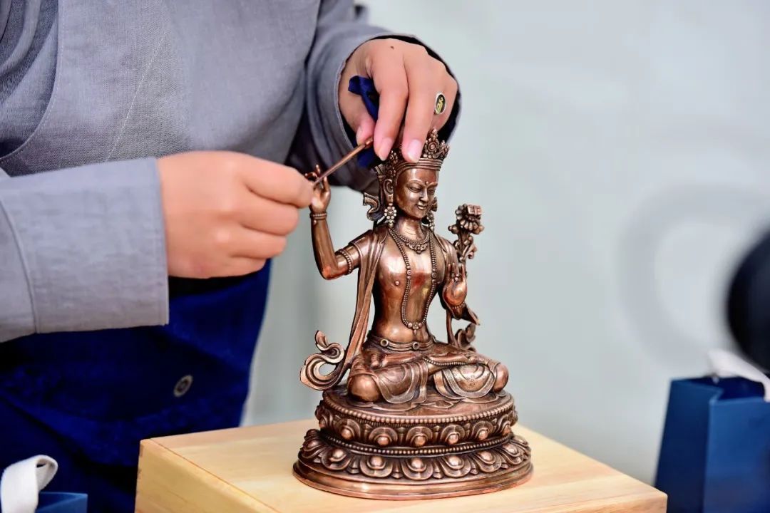 麦宿铸铜技艺是19世纪时由宗萨寺第一世宗萨钦哲仁波切所传,2002年,宗萨康谢五明佛学院工巧明系金银加工班增设铜铸班,麦宿铜铸制作技艺融合了印度、尼泊尔与藏区各地佛像制作的优点,在精雕工艺细节上更是细腻。鎏金铜技术是在传统铸铜工艺的基础上调整传统配方并结合现代工艺技术研发而成,在全藏区可说是史无前例的独门技术,也是近乎失传的古法工艺。