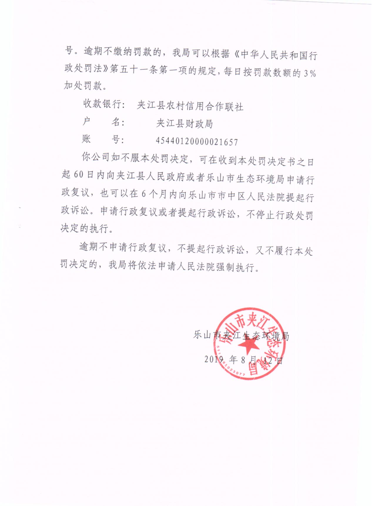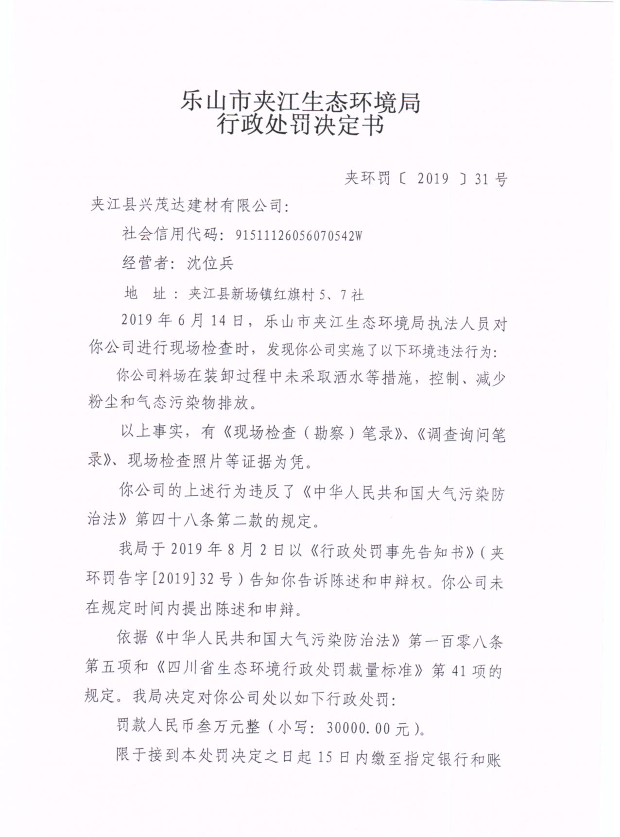 夹江县兴茂达建材有限公司行政处罚决定书