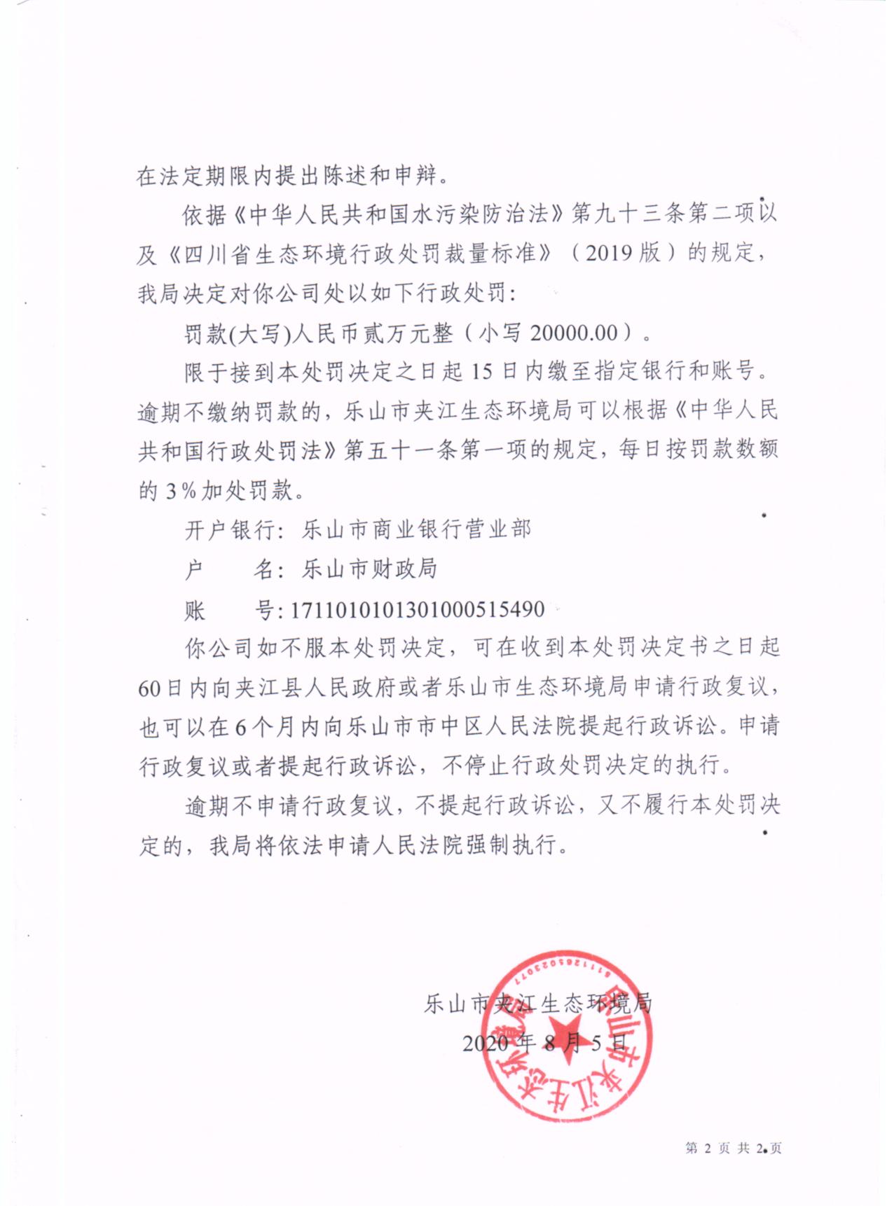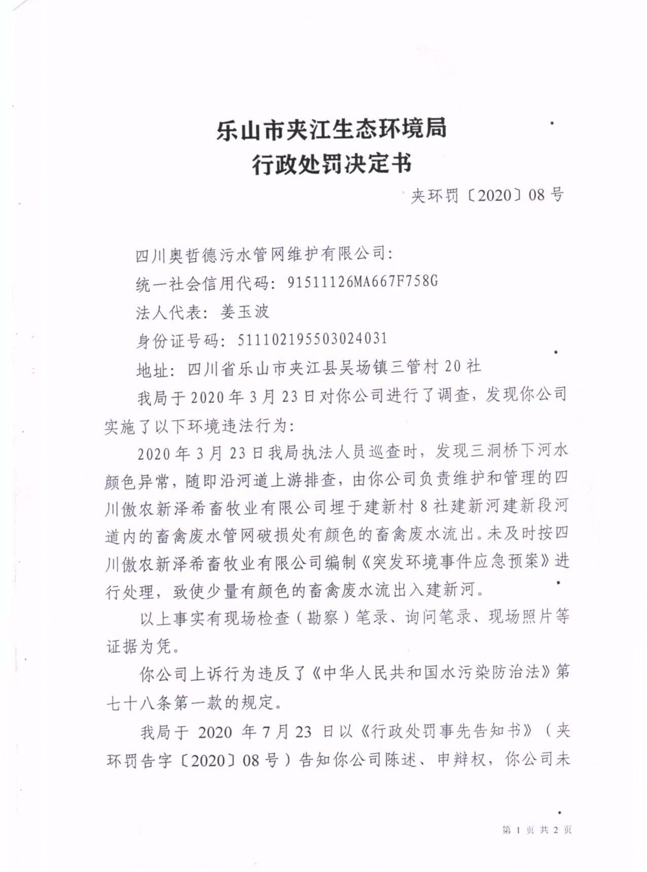 四川奥哲德污水管网维护有限公司行政处罚决定书