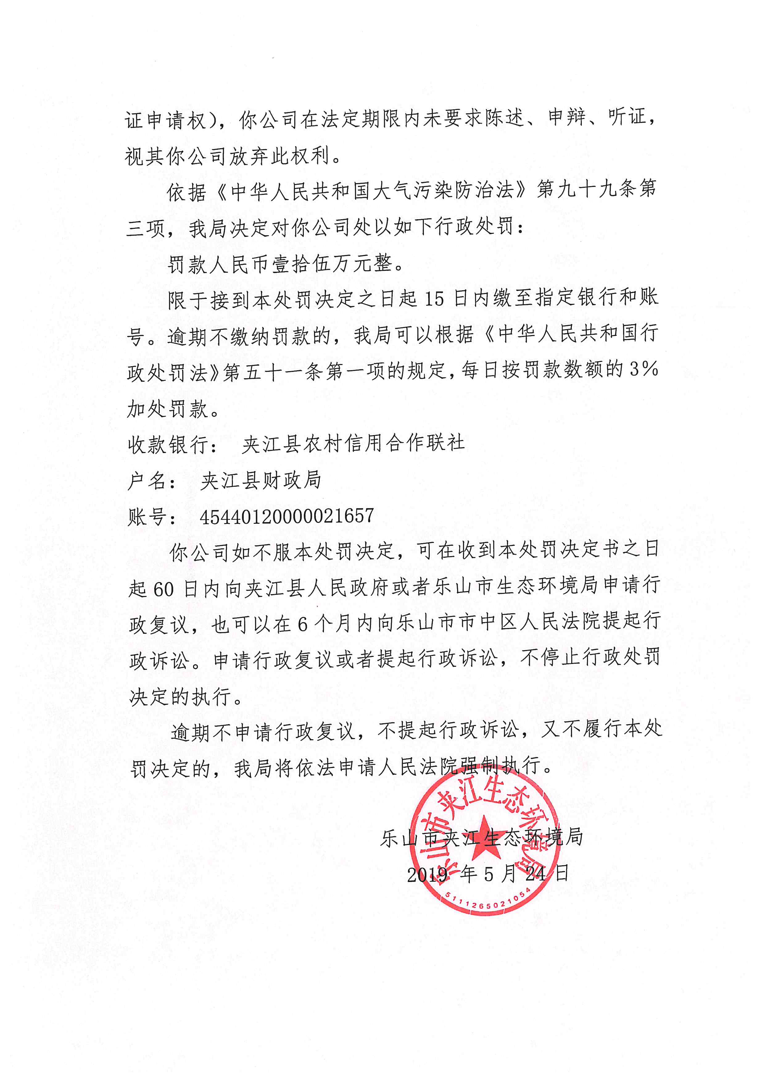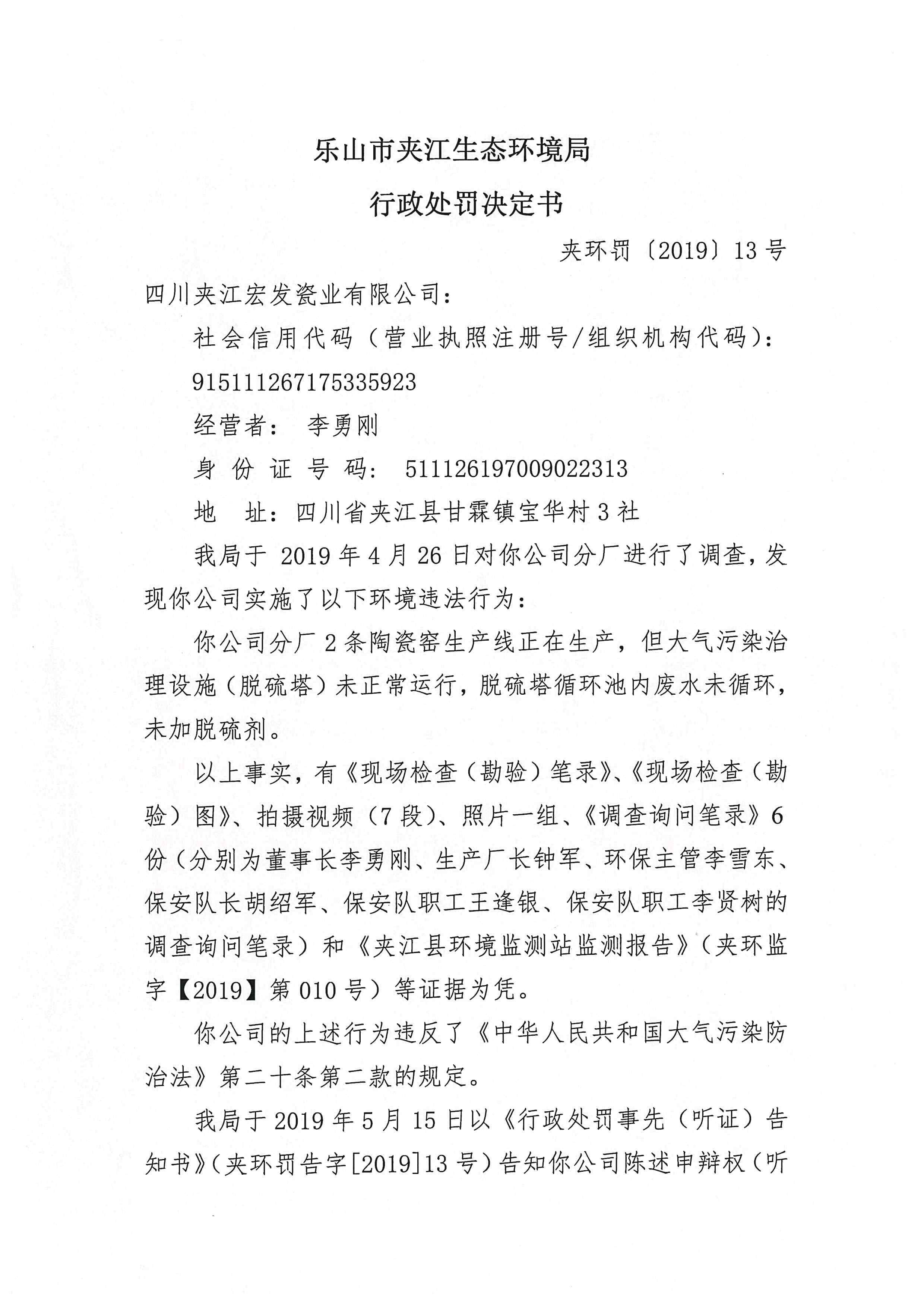 四川夹江宏发瓷业有限公司行政处罚决定书