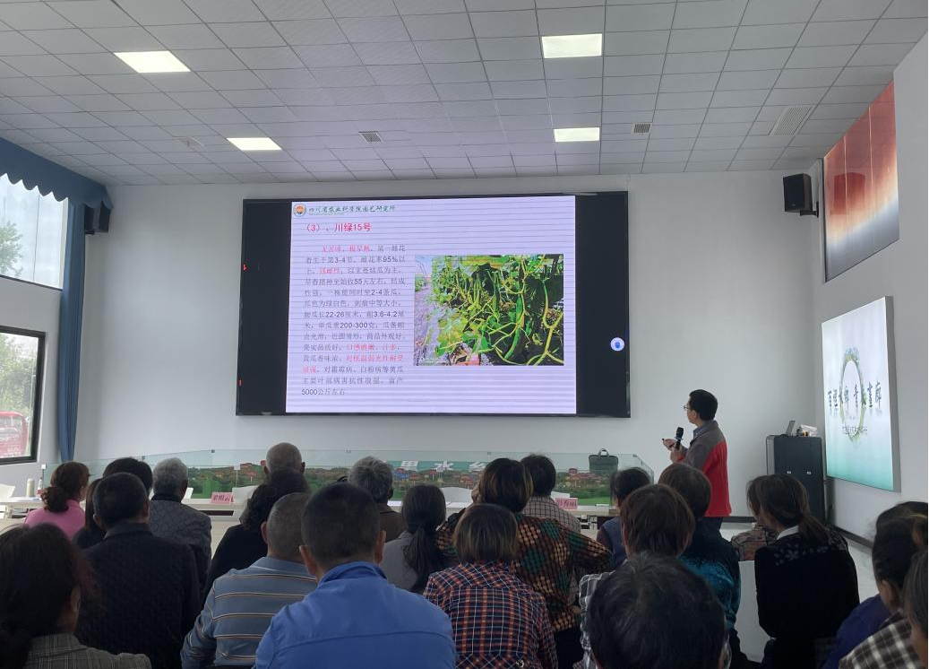 近日,县农业农村局在夹江县甘江镇金银河村举办黄瓜绿色优质高效生产技术培训会,项目技术专家:省农科院园艺所梁根云研究员、植保所席亚东副研究员,县农业农村局技术骨干、甘江镇农业综合服务中心技术员、蔬菜专合社负责人、黄瓜种植户等160余人参会。