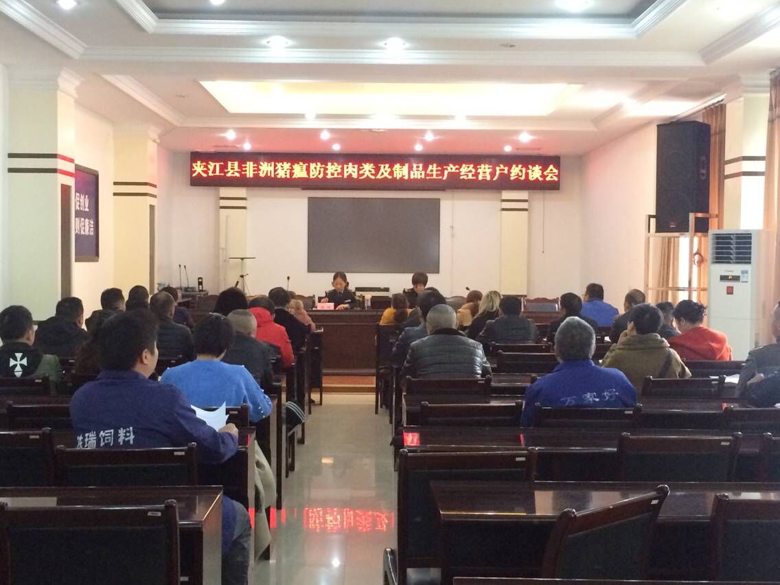 为切实保障我县居民食用的肉类及制品安全,11月6日,夹江县市场监管局组织全县冷冻库经营者、冷冻食品经营户、肉类生产加工经营户等召开了“非洲猪瘟”防控约谈会。