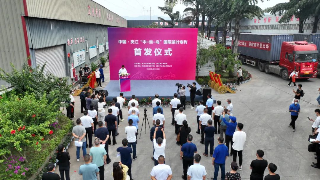 9月19日,四川夹江茶叶出口“中—吉—乌”专列首发仪式在夹江县华义茶业有限公司举行。乐山市委副书记蒋刚,市政府党组成员、副秘书长李宇飞,市委副秘书长罗雪兵,县委书记许天毅,县委副书记、县长张毅,县委副书记彭波,副县长薛怀军等市、县领导出席仪式。