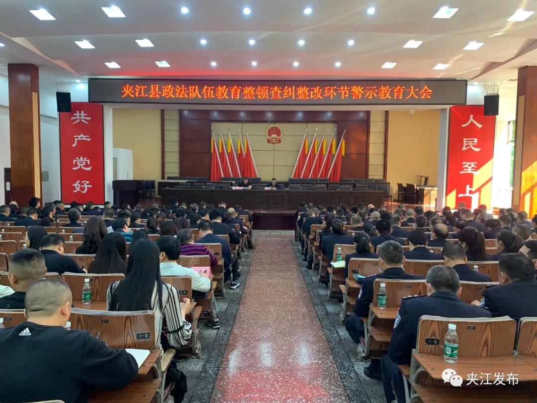 为深入贯彻政法队伍教育整顿查纠整改环节部署要求,增强一线政法干警的廉洁自律意识,筑牢拒腐防变思想防线,4月30日,夹江县政法队伍教育整顿查纠整改环节警示教育大会在县政府礼堂召开,县委常委、县纪委书记、县监委主任、县政法队伍教育整顿领导小组副组长伍仕军以《把稳节奏对标对表推进教育整顿查纠整改走深走实》为题做讲话,县委常委、政法委书记、县政法队伍教育整顿领导小组副组长廖建章主持会议。