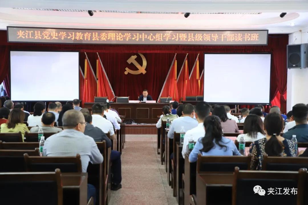 为高标准高质量完成党史学习教育各项任务,近日,夹江县党史学习教育县委理论中心组学习暨县级领导干部读书班在县委礼堂开班。