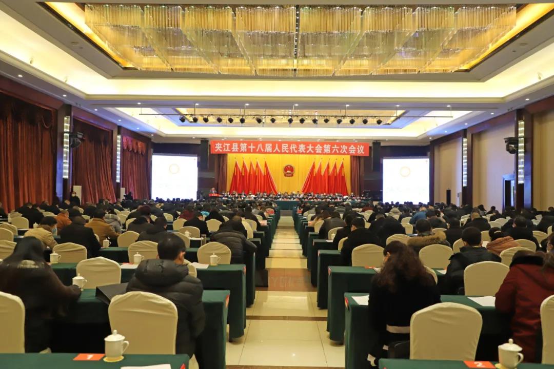 1月14日,夹江县第十八届人民代表大会第六次会议在峨眉山月饭店会议室开幕。