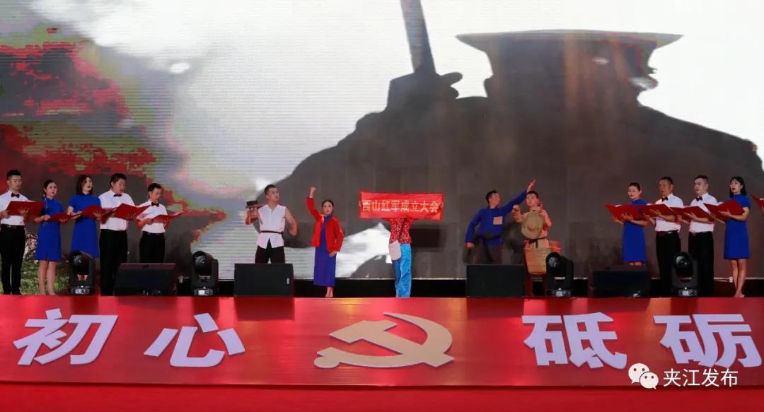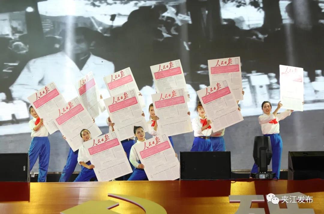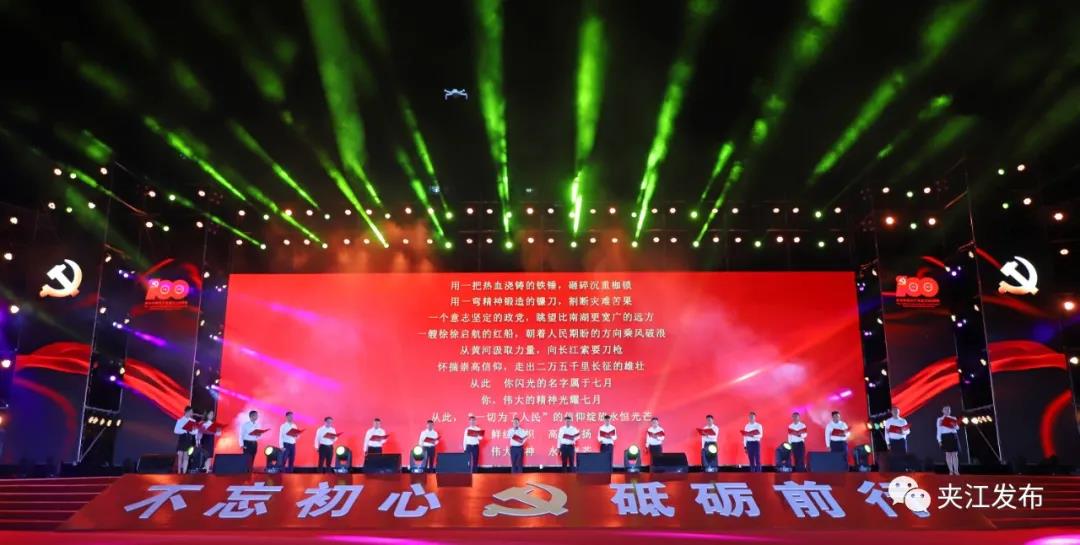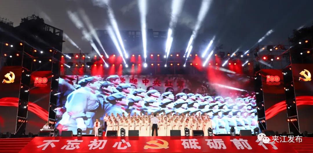 百年筚路蓝缕,百年风华正茂。演出在舞蹈“红动夹江”中拉开帷幕,通过音乐舞蹈、情景表演等艺术形式,讲述了红船的革命火种传播到夹江,党领导发动了响彻全川的西山农民武装暴动,革命的火种在夹江撒下。热血热土、燃情岁月、初心使命等篇章次第推进,再现了党的百年辉煌历程,突出表现了党的十八大以来,以习近平同志为核心的党中央推动党和国家事业取得历史性成就、发生历史性变革,夹江在新征程上实现翻天覆地变化,不断为新时代中国故事增光添彩。进入尾声环节,全场齐声高唱《没有共产党就没有新中国》,深情表达夹江儿女坚定不移听党话、矢志不渝跟党走的坚定信念和奋斗情怀,凝聚起为实现中华民族伟大复兴中国梦,始终初心不改、奋斗不止、砥砺前行建设社会主义现代化夹江新征程的磅礴力量。