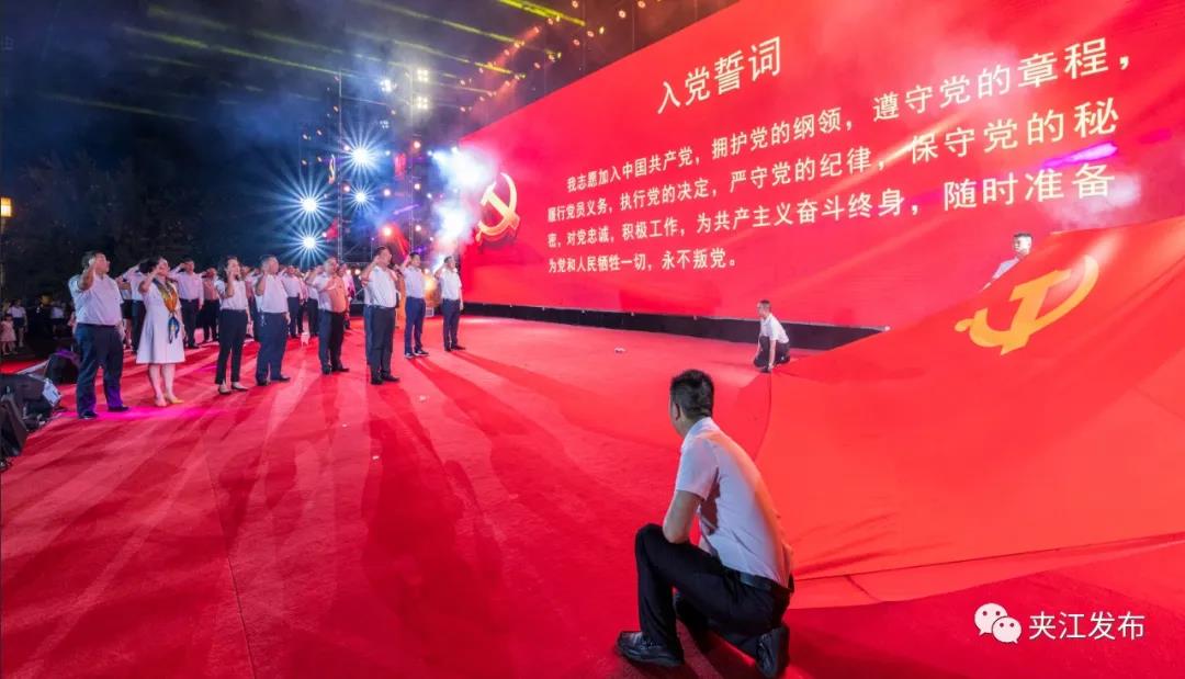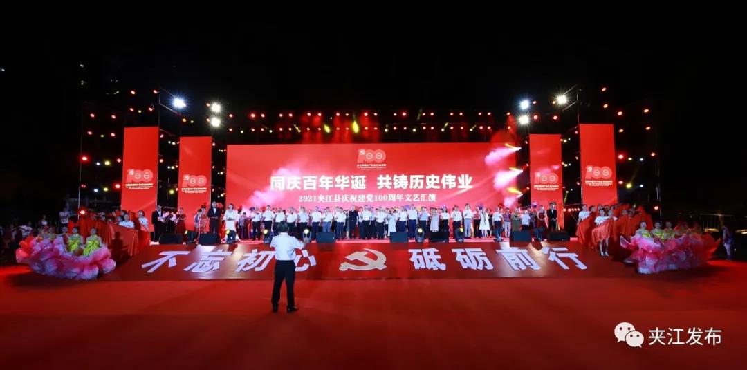 6月29日晚,以“同庆百年华诞共铸历史伟业”为主题的夹江县庆祝建党100周年文艺汇演在夹江广场举行。县委书记许天毅,县委副书记、县长漆宾,县人大常委会主任张晋锐,县政协主席李冰海,县委常委龙克强、刘永康、伍仕军、王晋辉、董明龙、商咏梅、廖建章与党员干部群众代表一同观看演出。