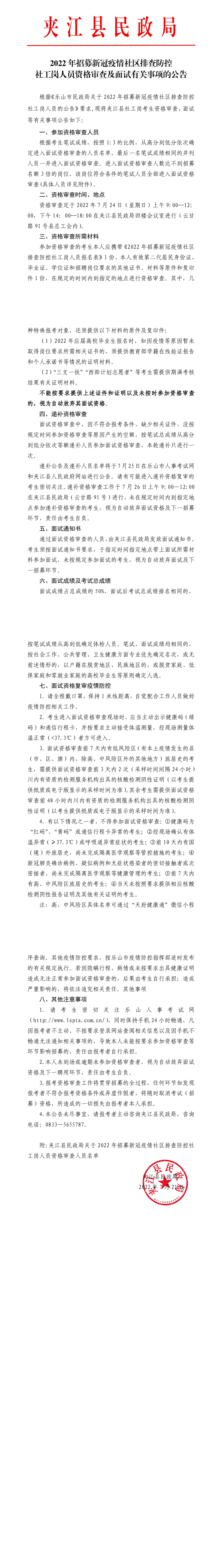 2022年招募新冠疫情社区排查防控社工岗人员资格审查及面试有关事项