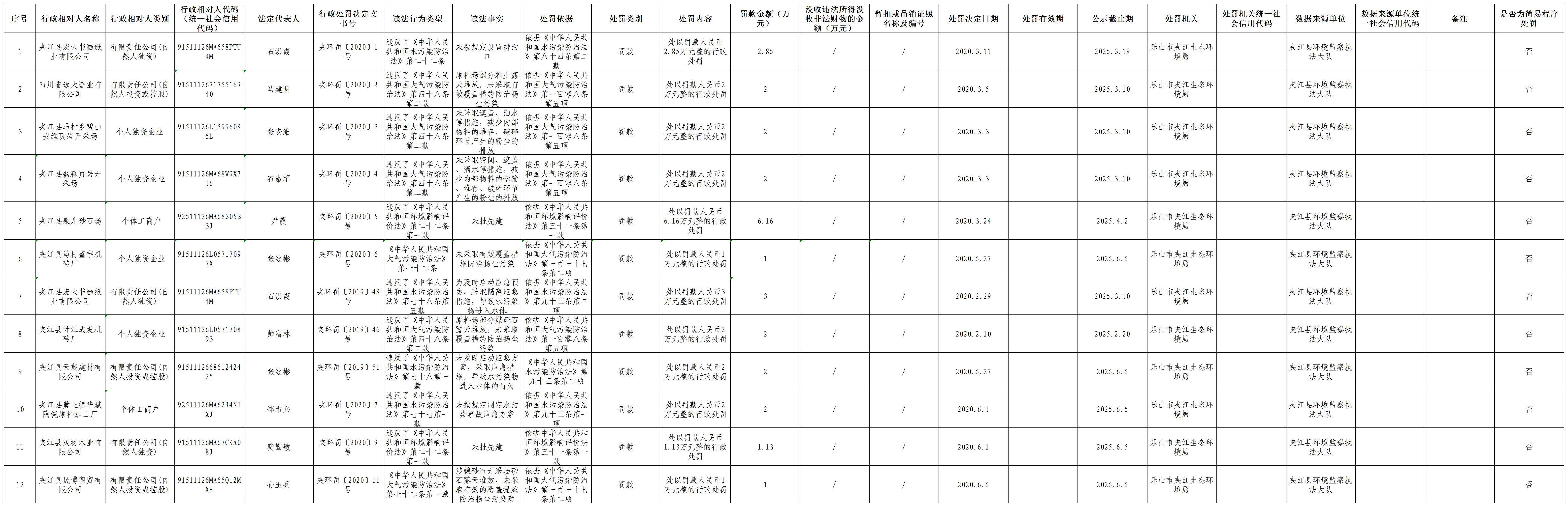 夹江生态环境局_行政处罚信息(法人及其他组织新).xls