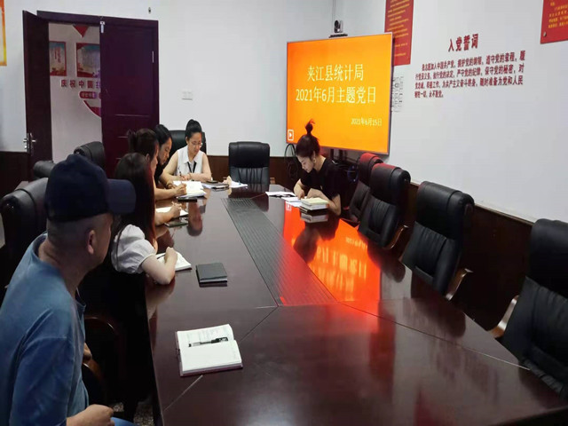 6月15日,夹江县统计局机关党支部组织召开6月主题党日,全体党员、干部、预备党员和入党积极分子参加。