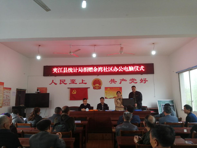 ——夹江县统计局捐赠华头镇余湾社区办公电脑1台