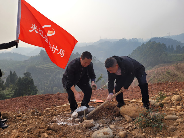 3月11日,在第44个植树节来临之际,夹江县统计局一行5人参加了全县组织的全民义务植树活动。