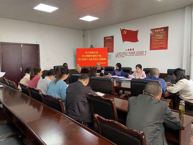 10月14日,县统计局召开全局干部职工大会,传达学习贯彻中国共产党夹江县第十五次代表大会精神,局班子成员及干部职工20余人参加。